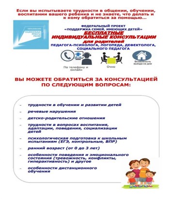 Информация по оказанию бесплатной консультационной методической и психолого-педагогической помощи родителям детей раннего и