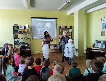 Дети ходили в сельскую библиотеку и с интересом послушали об истории развития космонавтики: кто был первым космонавтом, название ракеты, на которой полетел первый человек в космос, понятия «космос», «ракета», о планете Земля, поиграли в космонавтов. В группах поиграли в космические игры и рисовали рисунки.